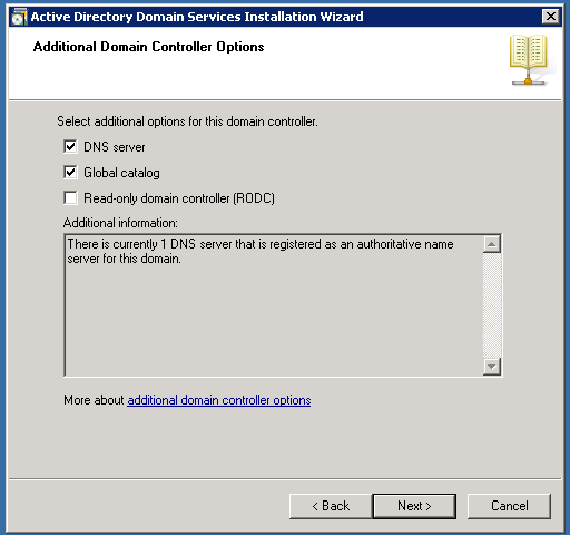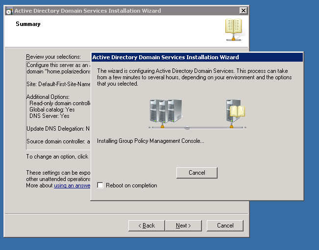 - After a few minutes, it should ask what options to enable on the DC, just accept the defaults