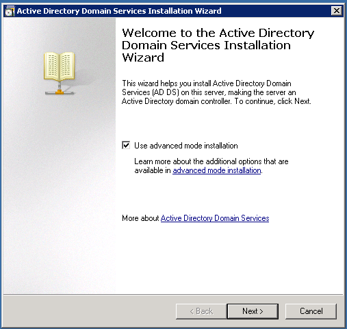Now let’s install the Active Directory software. Hit Ctrl+R (or start menu -> Run…) and run the dcpromo program.