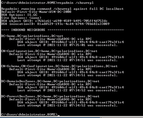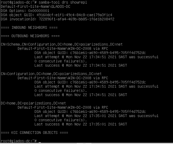 If Samba DC is still listed under Sites and Services, like here, delete the entry, as well as going into win-2008’s NTDS settings and deleting the connection listed there.