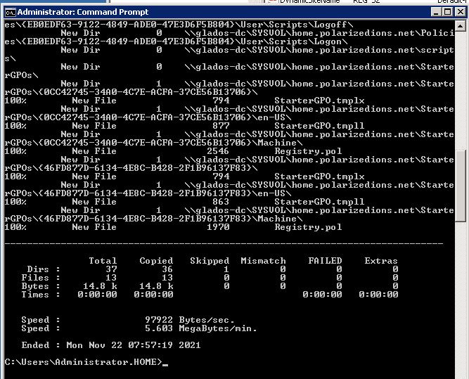 Now, let’s manually replicate the Sysvol contents, using this command on the windows machine, replacing <samba dc dns> and <domain here> with the appropreate values.