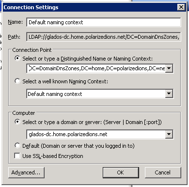Repeat the steps, connecting to DC=ForestDnsZones,DC=yourdomain,DC=tld instead.